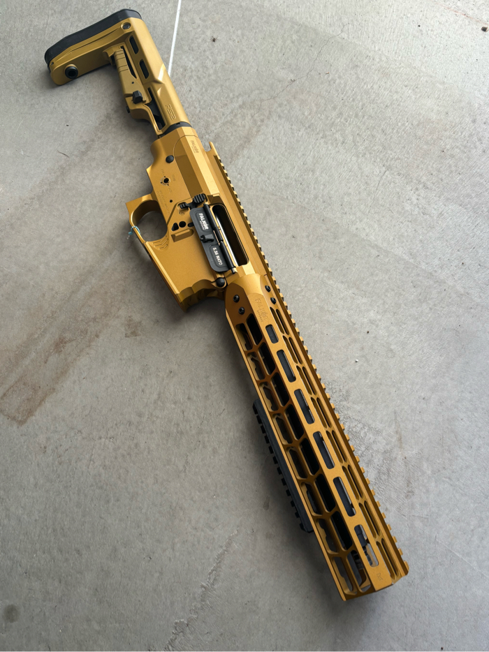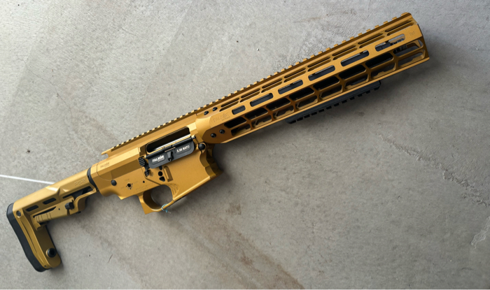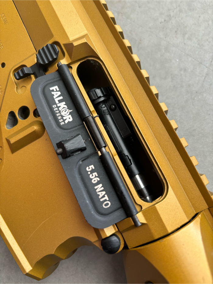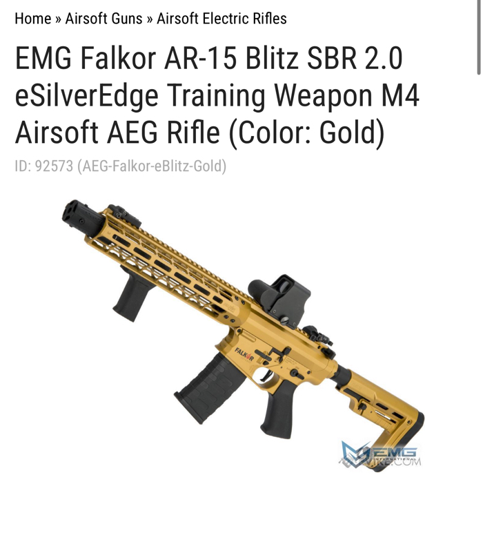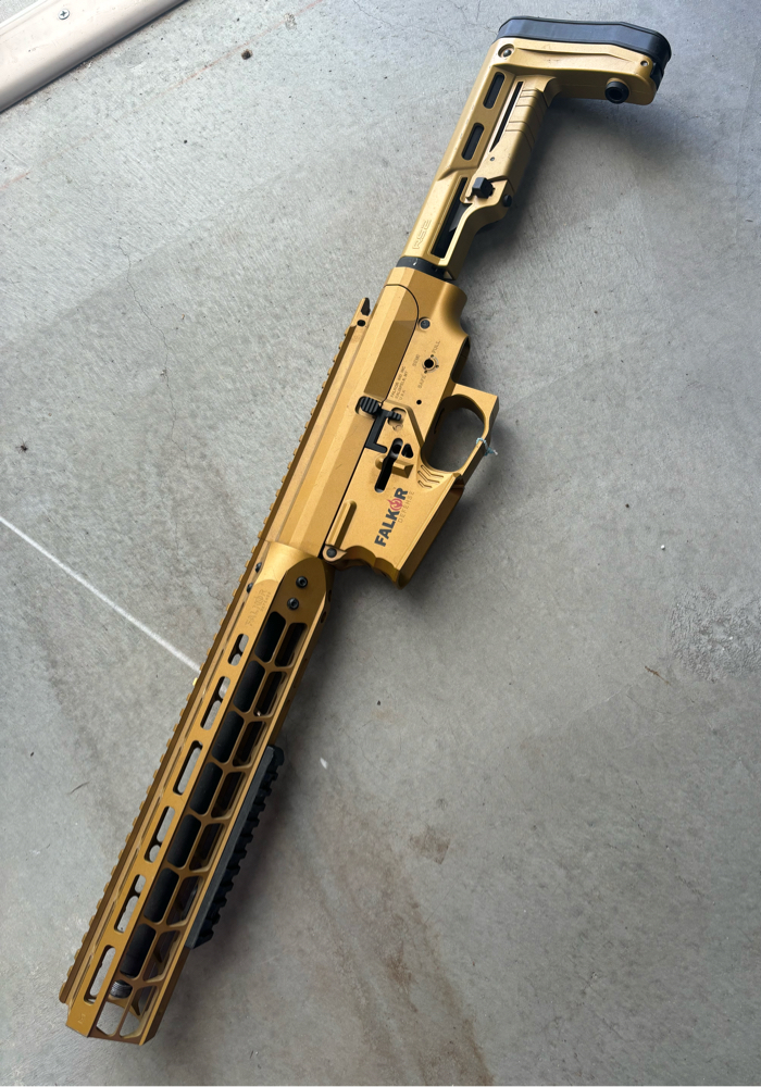 Selling a pristine condition EMG Falkor M4 / AR-15 SBR Full exterior kit. Composed of a very high quality metal, durable, and unique looking body. In Gold coloring with Falkor Laser engraved trademarks. Great for anyone looking to build a custom m4. Accepts standard version 2 gearbox.
