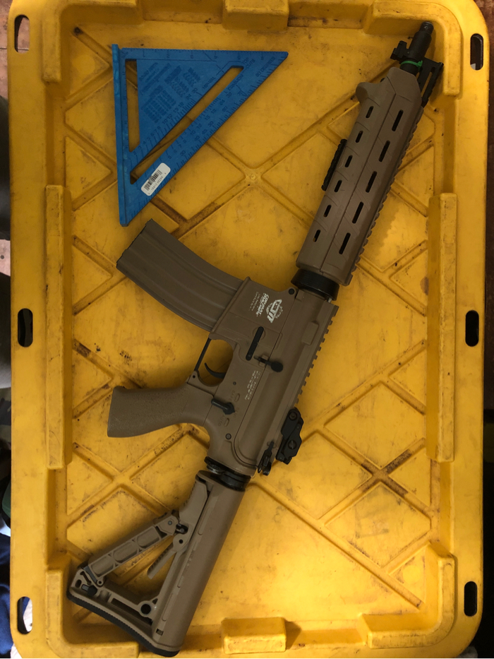 AEG CM Rifle used. Rifle does need some repair. Also needs to be cleaned. Does not come with battery. Will come with one magazine. After spending less than $75 for repairs you will have a fully functional rifle. You are able to take this to Evike and they will repair it for you for a price.