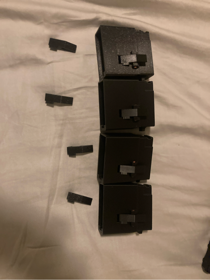 M4 mag to Ak mag converter, 3d printed, works only with cmya and echo 1 aks. Works with standard m4/m16 mags Colors: 2 black, 1 sparkly black.