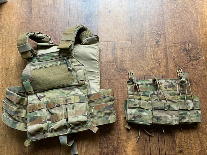 Comes with M4 mag pouch panel and an additional molle front panel which currently has 417 mag pouches on it. Everything pictured is included.