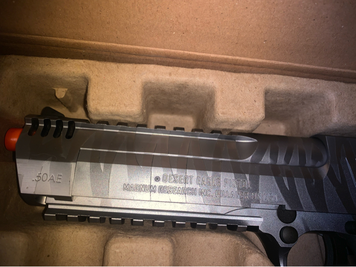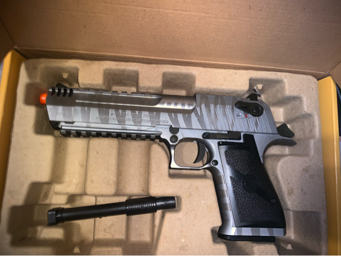 Brand new never fired/fielded. Comes with 1 mag and speed loader. Has a beautiful tiger stripe chrome finish
