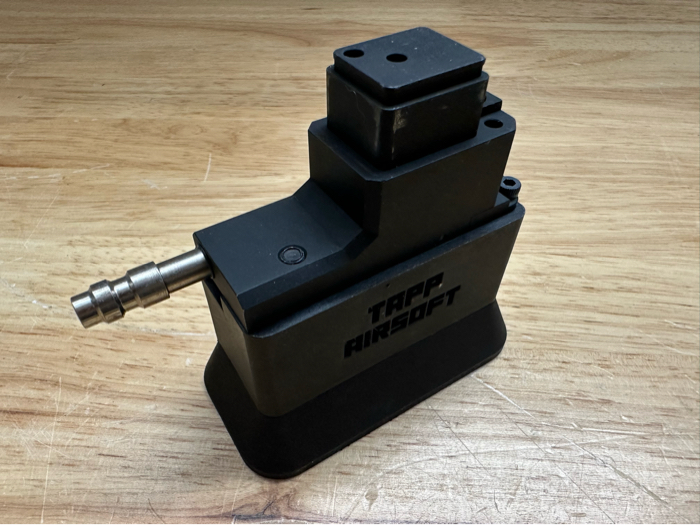 The Tapp M4 Modular Adapter converts your traditional gas airsoft gun to use HPA and accept standard M4 AEG magazines (super-feed mags recommended)