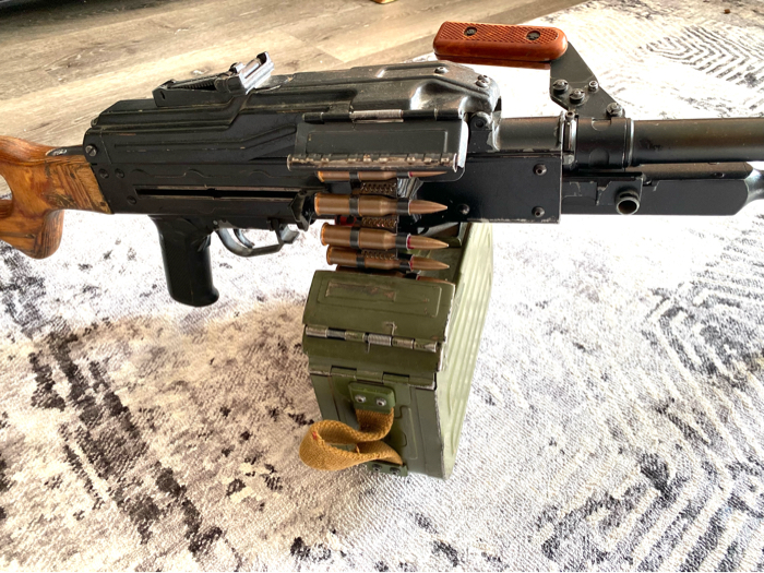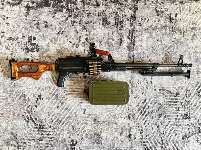 Whole gun is refinished and weathered. Looks real. Minor damage includes carry handle stopper wear and rear sight missing a wing.