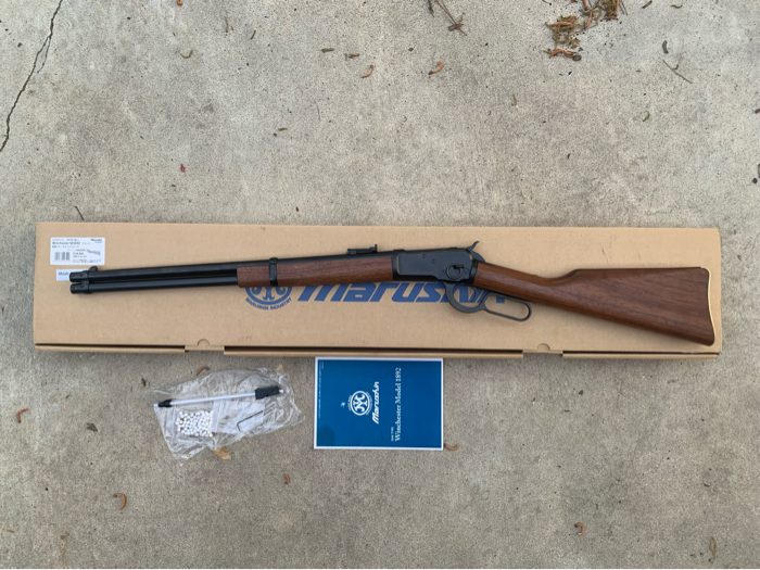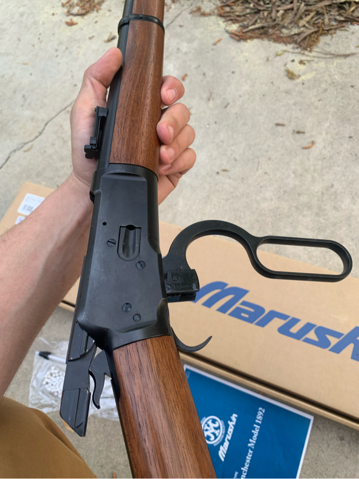 The Marushin Winchester M1892 is a faithful replica to one of John Browning's legendary designs. This gun is made of metal and has a real walnut wood stock, giving it a solid feel and realistic weight. Although the gun does not take shells, instead of have a magazine tube that goes from the front like the KTW guns, this one actually require you to load BBs from the loading gate, similar to the real gun. Another cool factor is whenever you operate the lever action, you can actually see a BB being chambered!