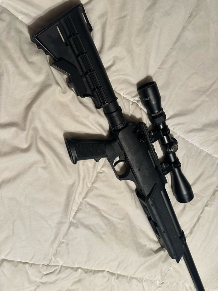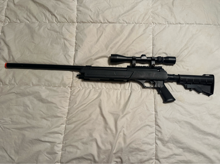 APS SR-2 MB13 Metal Bolt Action Airsoft Sniper Rifle- Powerfull 470 FPS Missing mag, tripod, and ball bolt, all cheap to buy Gun shoots perfectly Scope doesn’t have crosshairs