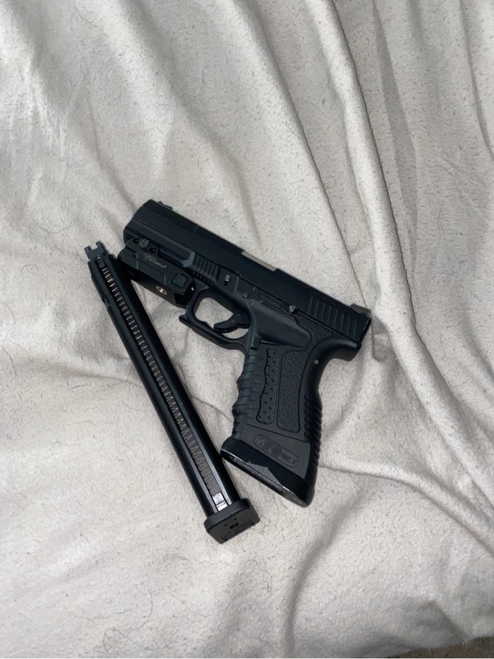 GP1977 Airsoft pistol works fine but needs to be lubed up doesn’t come with laser unless you want to pay more