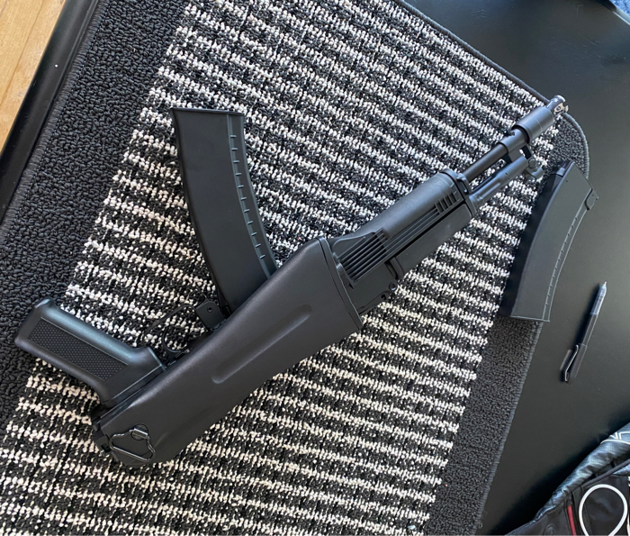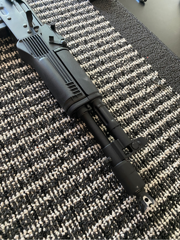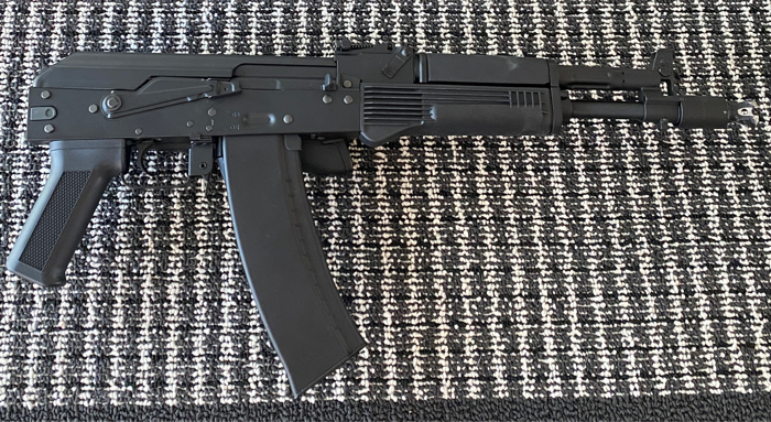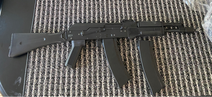 CYMA Standard Stamped Metal AK-105 AEG With Extra Mag. I bought this gun to collect so I haven’t shot it once. The only type of wear on this gun is some metal chipping off of the tip of the flash hider since I tried to take the orange part off and in doing so I scratched the end of the flash hider. This doesn’t affect the gun in any way besides the looks which ti me looks better since it gives it that war torn look but that’s just my opinion. It doesn’t come with a battery and I bought it for $221 on evike. The FPS range is 425-435 but it might shoot less than that since every airsoft gun I’ve owned doesn’t consistently shoot the FPS that is stated. Both mags are high cap and 2 high cap mags are included. It’s an 8.4v 1600mAh Small Stick Type / 7.4v LiPo recommended. This does not include the battery only the gun and 2 mags. Those are just the batteries that the gun takes. Like I said before I’ve never shot this gun as I bought it to collect so it’s pretty close to new as the internals go. Only thing that differs this from a brand new one is the chipped paint on the flash hider that I mentioned earlier. Any questions feel free to ask. No trades.