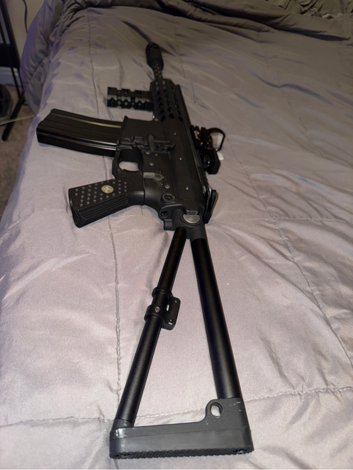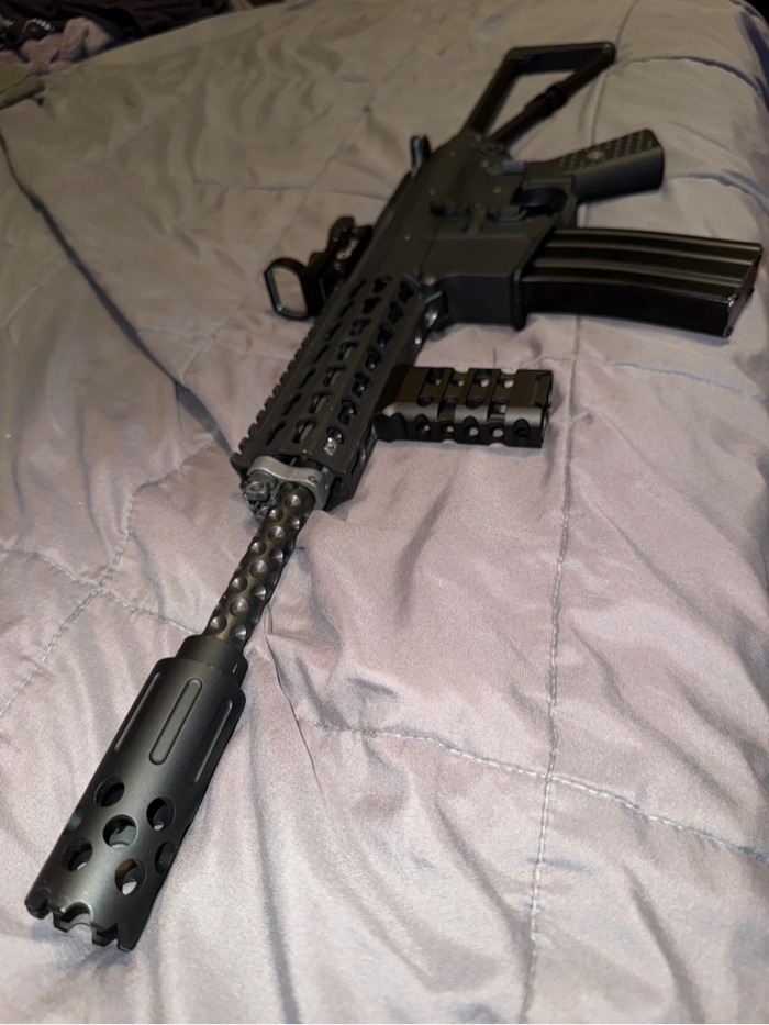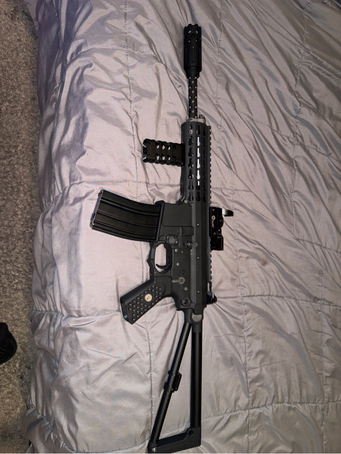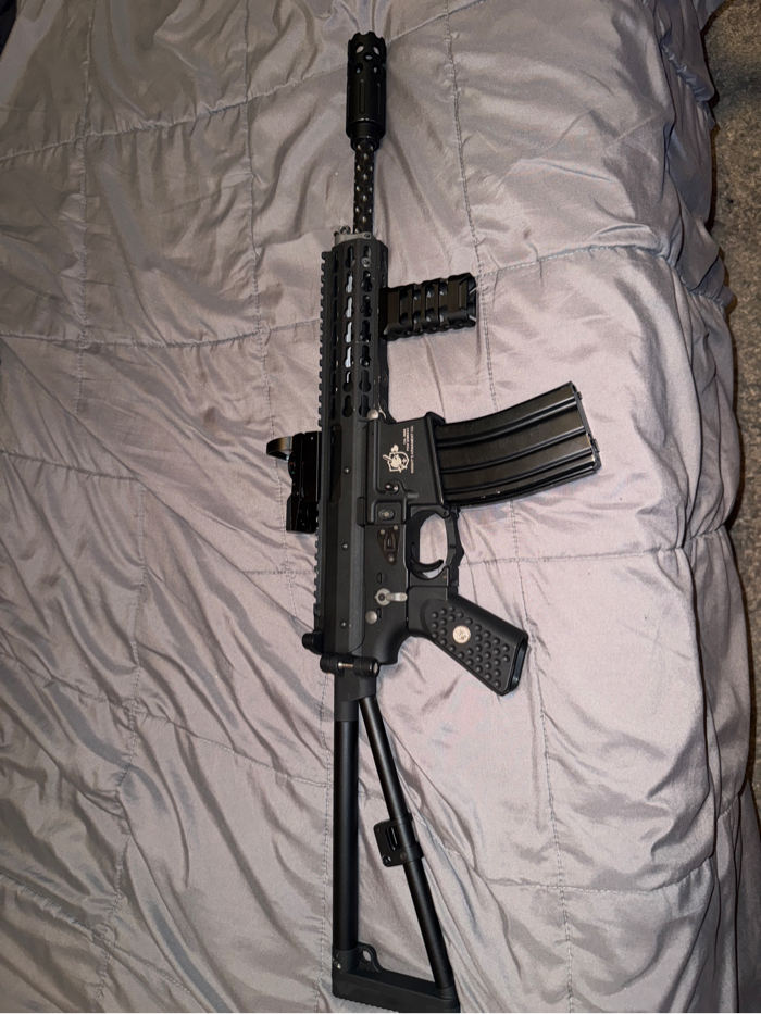 Used Knights PDW Gas airsoft rifle Condition 8/10 Comes with vertical foregrip and red dot multi sight and barrel flash hider