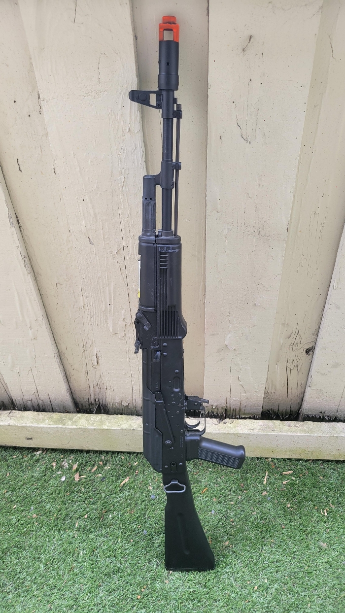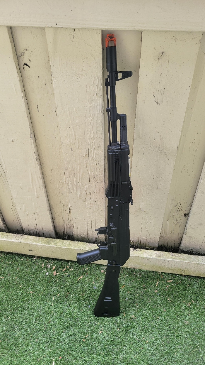 Lighty used gun, comes with two mags, and a 2500mah 7.4v lipo. Shopped space in the front handguard to fit this nice sized lipo, doesn't affect performance. No original box. Works great 👍 No trades, please