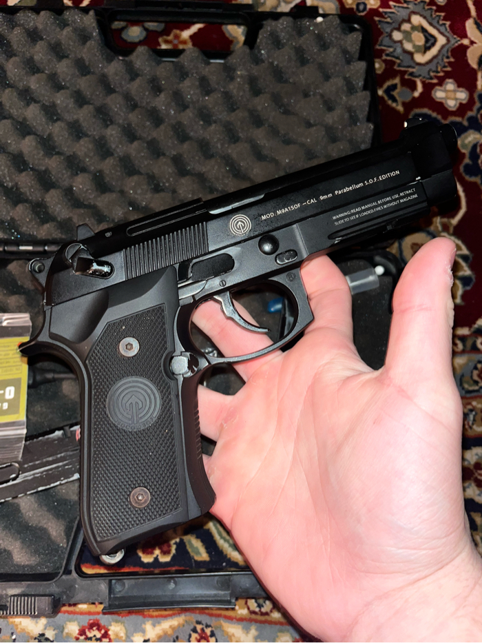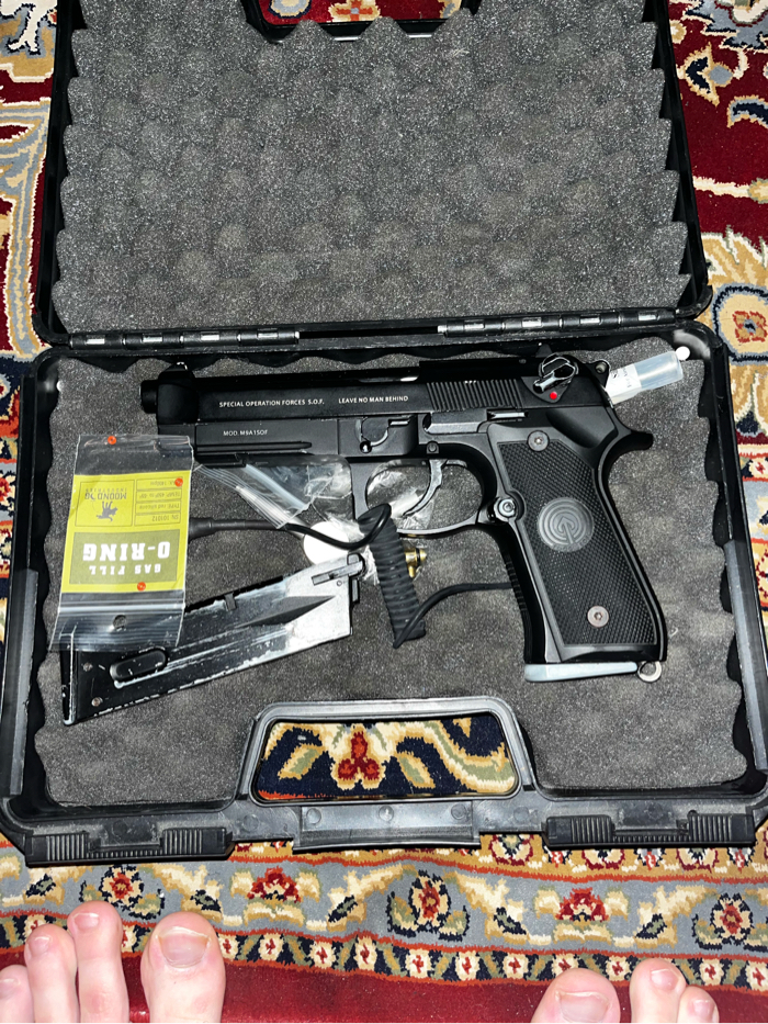 A fully functional Socom Gear WE M9A1 SOF Gas Blowback with 2 magazines, carrying case, and a collection of tid bits for maintenance. (Silicone oil, extra o rings, gas nozzles, etc. more in photo)