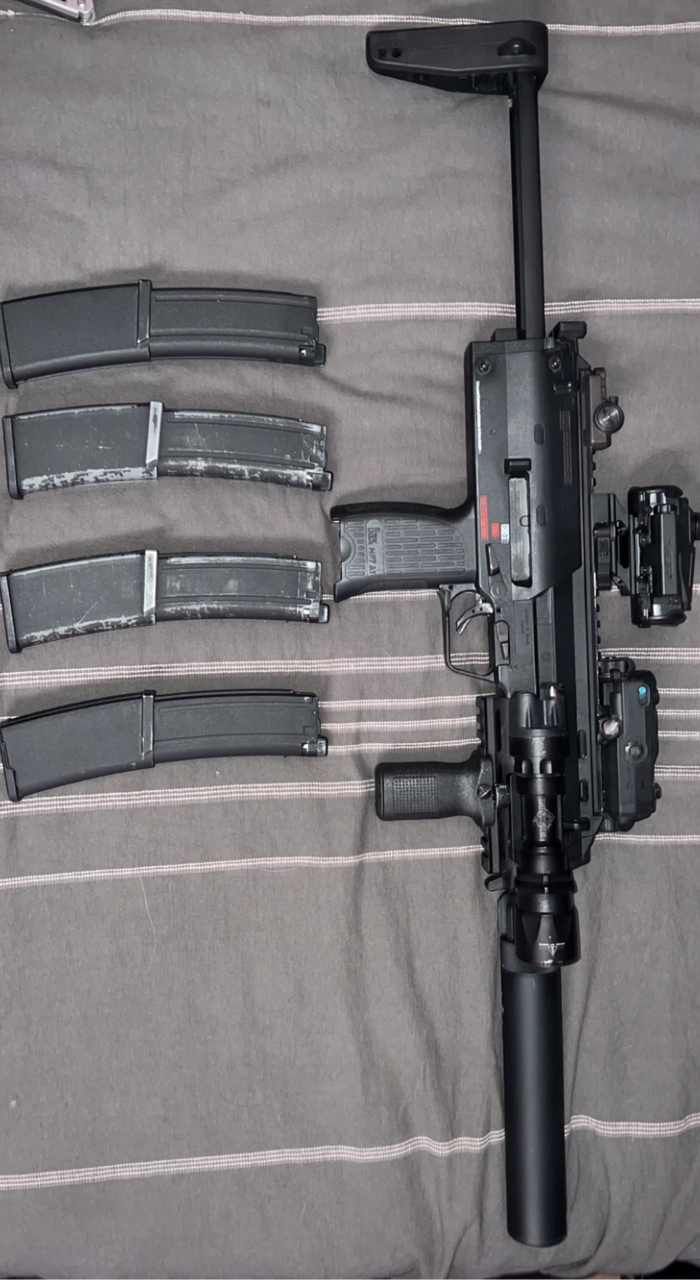 Boneyard VFC mp7 full size comes with 4 working mags and 3 extra boneyard mags they all hold gas. Mags were $70 each Optic and grip are $120 and $20 respectively