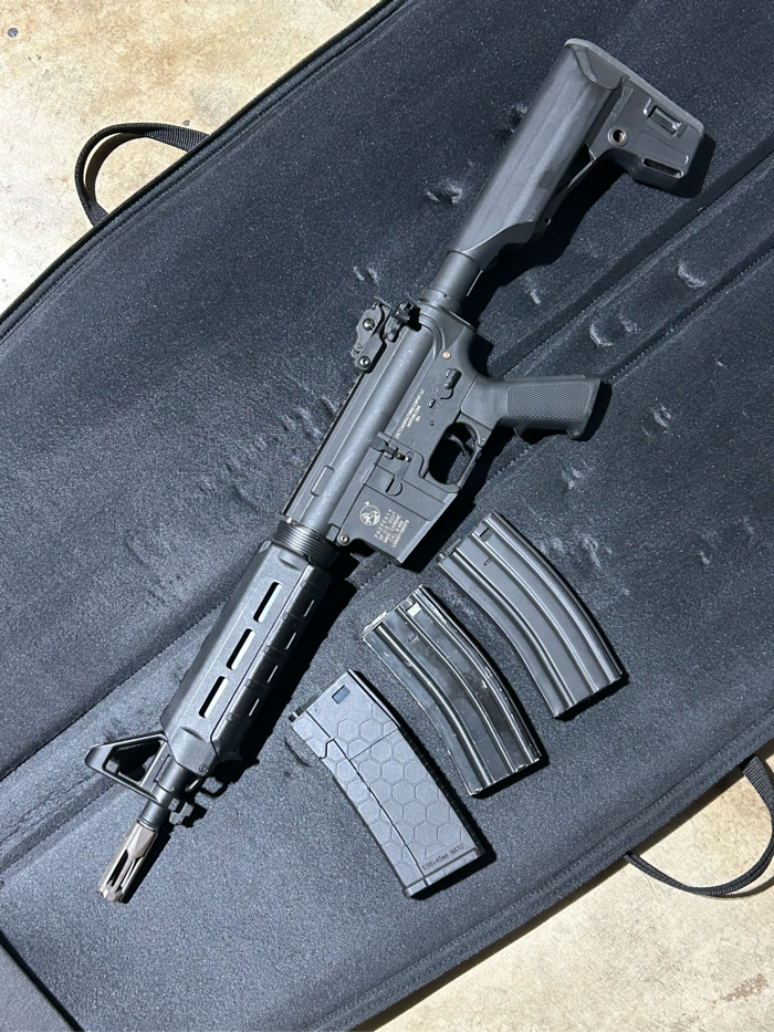 JG Free float picatinny handguard for front sight post available for purchase for an additional $45. KAC style rail covers and vertical grip included.