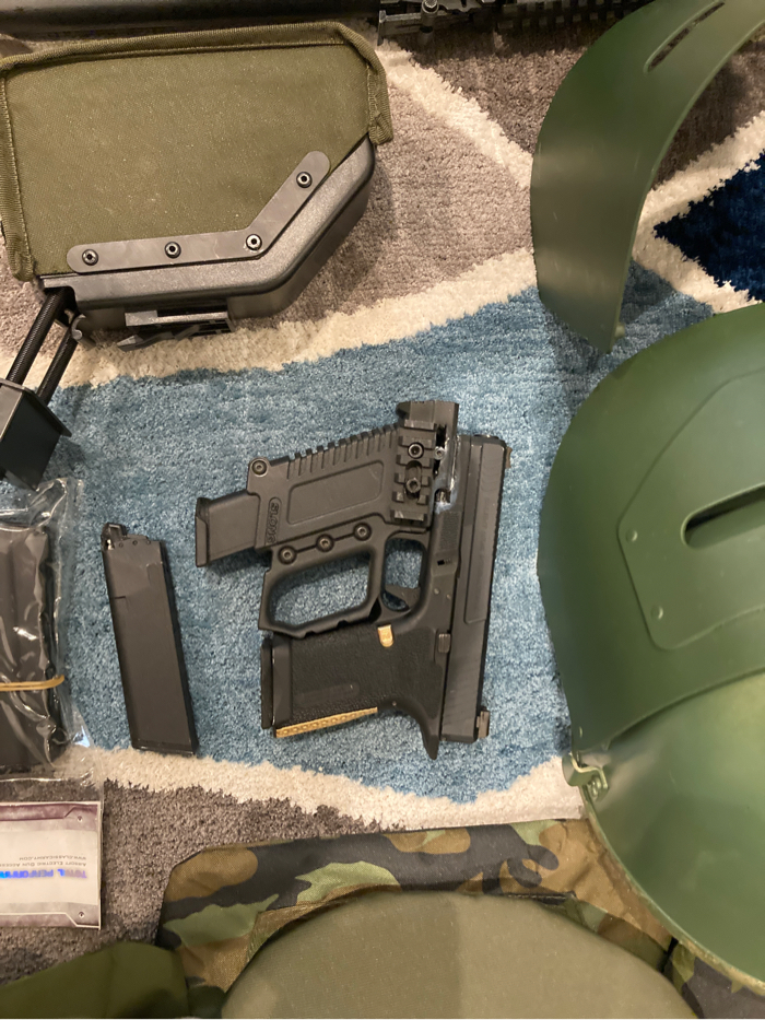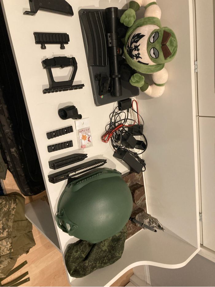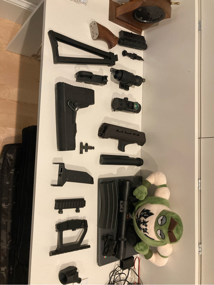 Comes with magpul furniture, a drum mag and an aps CQB stock. Shaved down trigger for winter use and slight stock wobble