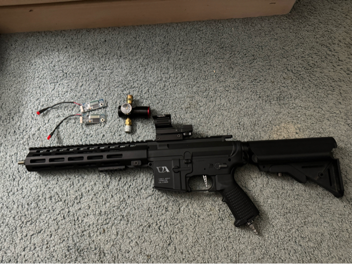 (Polarstar fusion engine v2 gen 3) (pro win hop up) (mad bull 6.01mm ultimate tightbore 7075 aircraft alloy barrel) (flat trigger) (fcu) (classic army ca mod m4 upper and lower receiver) (red line regulator)